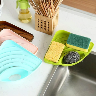 This kitchen sink drainer stores sponges, dish brushes, scrubbers, and cloths, making cleaning utensils easier and your sink area more organized.