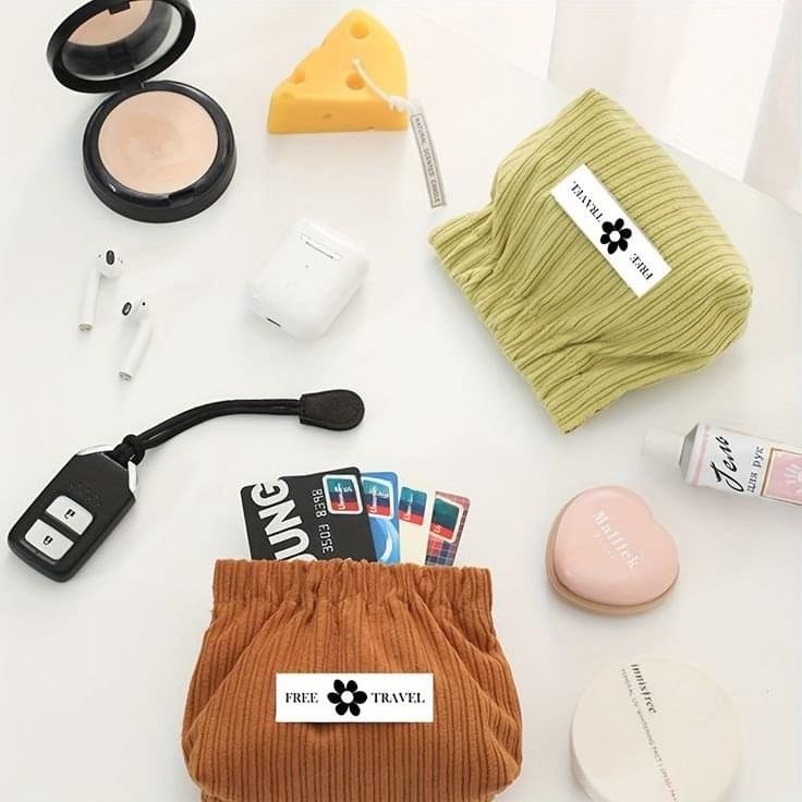 Mini Self Closing Corduroy Cosmetic Bag